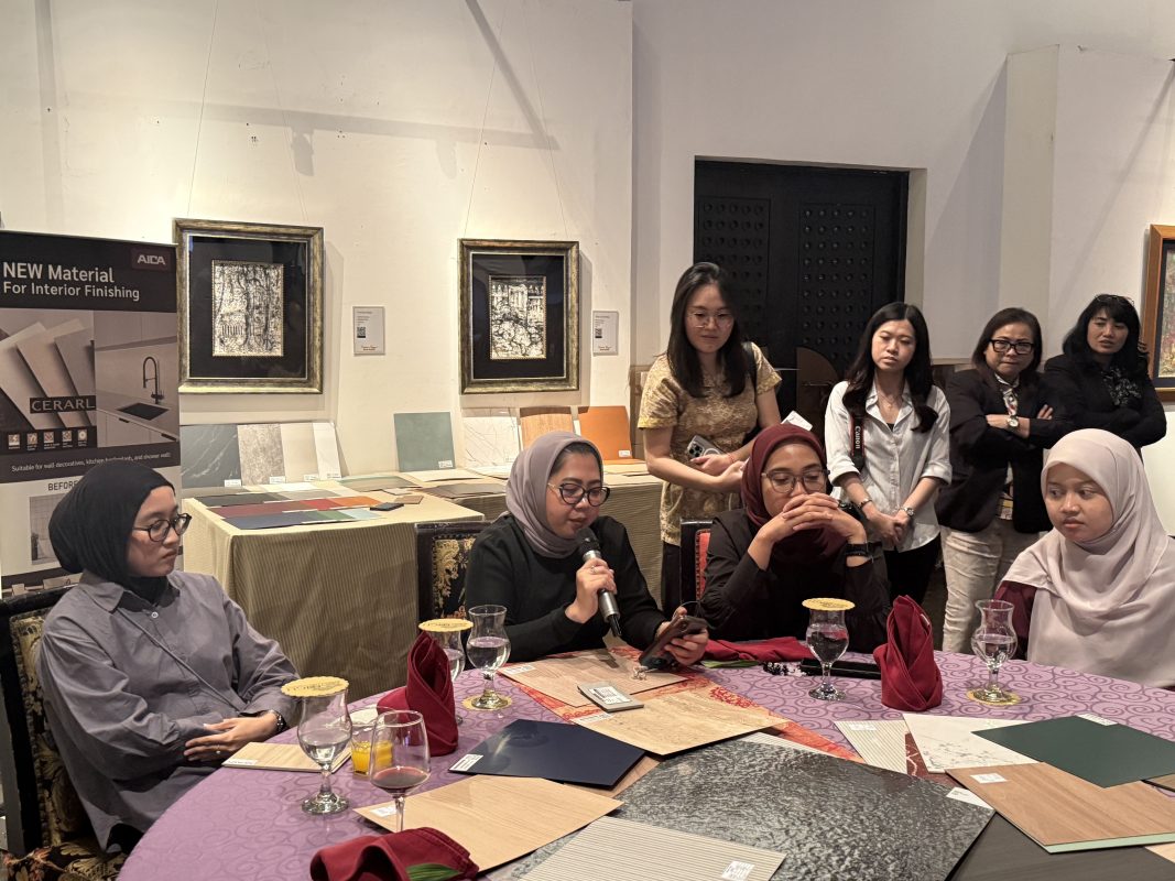 Sementara itu, AICA Indonesia diwakili oleh Yuta Nakanishi, yang menyoroti peran AICA dalam mengembangkan material dekoratif berkualitas tinggi di Indonesia. AICA Indonesia sendiri merupakan bagian dari grup AICA Asia Laminates yang fokus menyediakan produk seperti AICA HPL, Cerarl, dan Thoughtop. Dengan pabrik modern dan distribusi luas di Indonesia, AICA berperan penting dalam menyediakan material inovatif untuk interior, furnitur, dan arsitektur modern yang berkelanjutan.